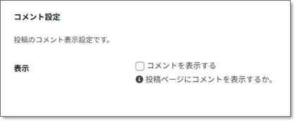 Cocoonの場合は、Cocoon設定>投稿タブの「コメントを表示する」のチェックの有無で一括制御が可能です。
