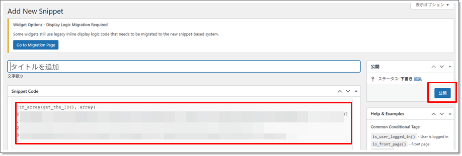 「このページIDがリストに入っていなければウィジェットを表示する」という意味です。